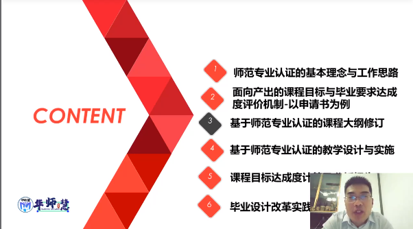 1月8日上午,张克玉教授以《实操师范专业认证基于毕业要求的课程教学大纲制定与实施——以数学与应用数学专业为例》为题,全面细致的讲解了师范专业认证的思路课程大纲修订、教学实施、课程教学实现课程目标、课程评价聚焦目标达成与课程目标达成评价与改进机制。