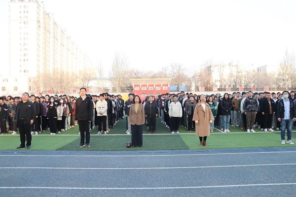 煤炭工程学院党委书记张蕾、计算机与网络工程学院党委书记葛振斌、两学院辅导员及学生参加升旗仪式。