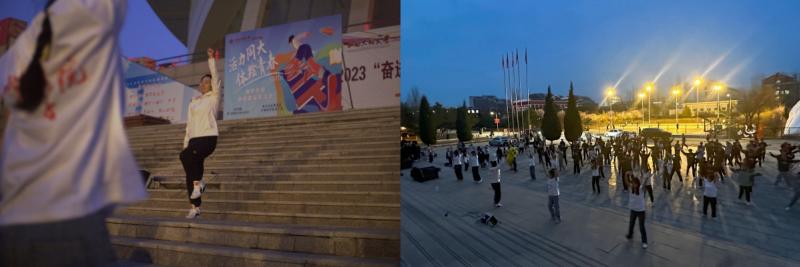 校园全民健身操活动月积极践行了习近平总书记关于体育的重要论述的时代内涵,落实了学校“深入开展全民健身运动,‘五育’并举滋养活力同大”主题,大力弘扬中华体育精神,促进青少年健康成长,借助体育学院专业优势,把群众体育健身活动送到师生身边,形成全员参与的校园新风尚。体育学院经过前期精心策划,面向全校师生设计编排了难易程度适中、健身效果显著的系列健身操。健身操选用曲目包括时下流行、师生们耳熟能详的《健康到到令》、《上春山》、《最炫民族风》等青春洋溢、活泼动感的乐曲,由体育学院青年教师董茜茜在现场为参与活动的师生讲解动作、亲身示范,活动现场人头涌动、轻松活跃、热情高涨。
