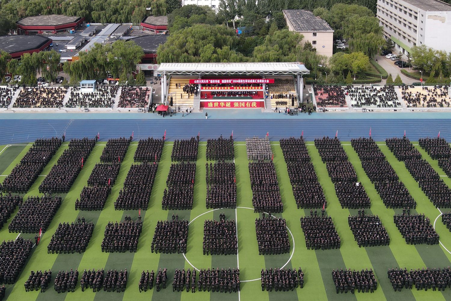 校领导、大同市军分区和承训部队首长出席大会。各学院党委书记、院长、副书记、团委书记、2024级学生辅导员、全体教官及2024级新生参加。校党委副书记寇福明主持大会。