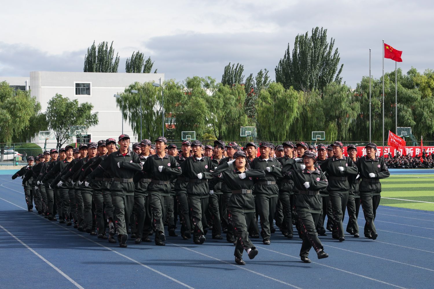 一声令下,分列式开始。伴随着高亢激昂的《中国人民解放军进行曲》,由3个营组成的1个护旗方队、48个分列式方队,迈着矫健的步伐经过主席台。飒爽的军姿、整齐的队列、饱满的精神,同学们意气风发、斗志昂扬,用辛勤和汗水诠释着青春的力量,奋力展示他们15天的军训成果。