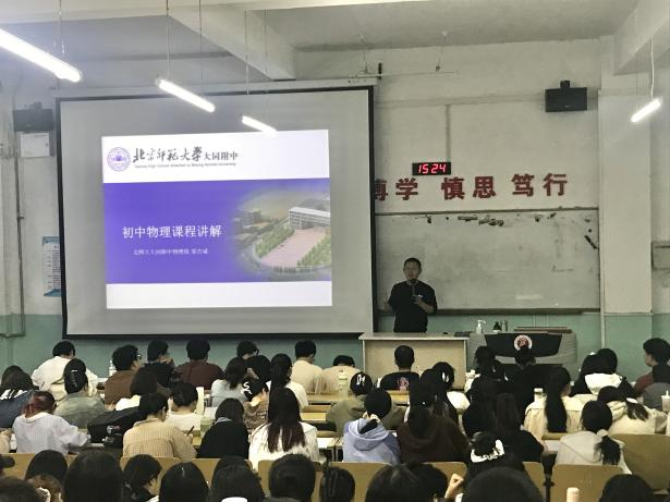 9月12日,教育见习示范课中,李倩老师、翟志彩老师分别选用了“位置变化快慢的描述——速度”“专题——力的动态平衡”课程内容,以其深厚的专业素养和严谨的教学态度为同学们带来精彩的授课。同学们以高中生的视角参与课堂,感受优秀教师对精品课堂的把握程度。9月13日,刘泽宇老师以“小小教师养成记”为主题,结合自己丰富的教学和班主任工作经验,用鲜活生动的实例,多维度阐述优秀老师应具备的素质。梁杰斌老师以“初中物理课程讲解”为主题,结合自己多年丰富的教学经验,从初中物理教学内容、难度、初中生特点以及初中物理讲解技巧等方面进行了深入阐述。