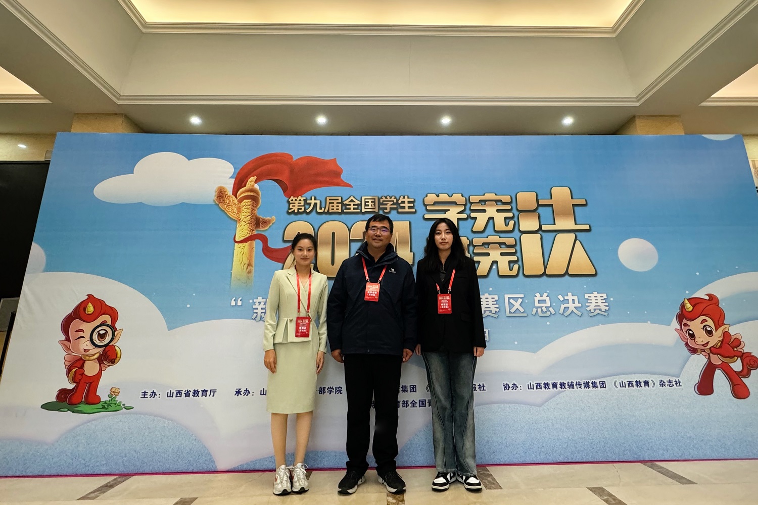 10月19日至20日,第九届全国学生“学宪法讲宪法”比赛(山西赛区)总决赛在山西经济管理干部学院举办。我校法学院党委副书记高海带队,法学院学生吴晓彤和王佳慧参加比赛并进入决赛。经过激烈比拼,吴晓彤获演讲比赛(山西赛区)二等奖,王佳慧获高校组素养竞赛(山西赛区)优秀奖,高海获优秀指导教师。