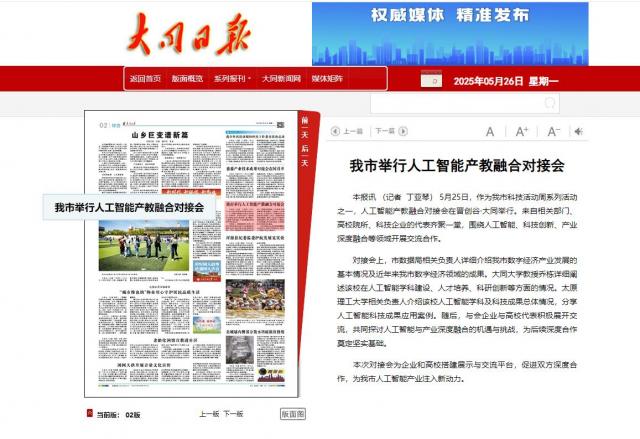 本报讯(记者 丁亚琴)5月25日,作为我市科技活动周系列活动之一,人工智能产教融合对接会在晋创谷·大同举行。来自相关部门、高校院所、科技企业的代表齐聚一堂,围绕人工智能、科技创新、产业深度融合等领域开展交流合作。